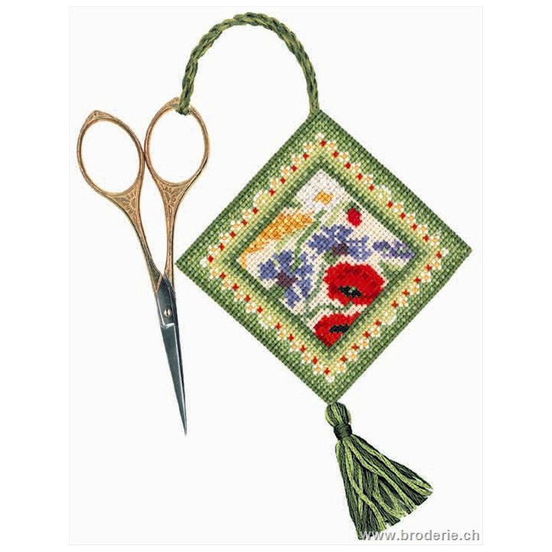L'article 'Bonheur des Dames, kit porte ciseaux été (BD3353)' fait partie de notre assortiment depuis le 5 août 2004. La gamme française Bonheur des Dames est très complète et propose de très jolis modèles de kits de point-de croix comptés. Sont très représentés les thèmes de la mer, des mois et saisons,la cuisine et les enfants. Pour l'instant nous avons mis sur le site les kits, mais le Bonheur des Dames propose aussi des accessoires tels que coeur en lin, bottes de Noël en feutrine prêts à être broder, modèles de points de croix. Vous pouvez nous contacter pour ces articles que nous tenons aussi en partie en stock. Fiche technique: kits très bien présentés, souvent avec les accessoires fournis. Mais attention, les kits peuvent avoir différents points et parfois des petits-points (tout le kit -ex BD3646 - ou une partie - ex BD1135), merci d'y prendre garde lors de votre commande.