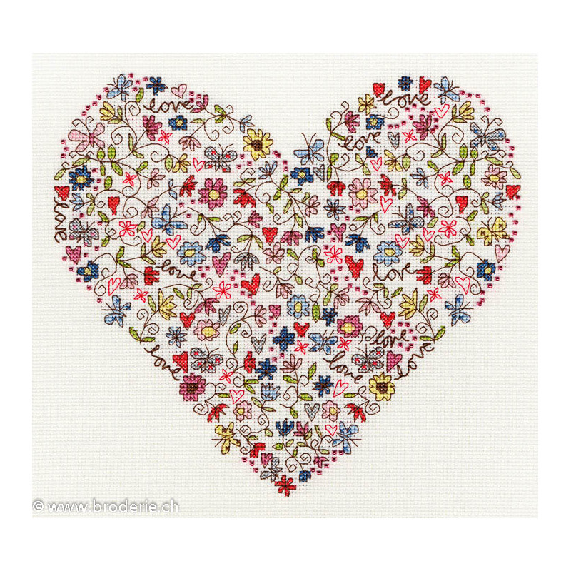 L'article 'Bothy Threads, kit Love Heart (BOXKA1)' fait partie de notre assortiment depuis le 12 février 2014. La Maison Bothy Threads nous propose toute une série de très jolis kits de point comptés sur aïda, créés à partir de divers tableaux et artistes anglais. Vous trouverez ainsi des styles très différents (petite filles de Gorjuss, maison drôles de Cut Thru' ...etc). Pour une recherche facilitée des créations d'un artiste, n'oubliez pas d 'utiliser a recherche en mettant le mot clef désiré - par exemple Gorjuss, et vous les aurez tous sur une même page. La complexité et réalisation de ces kits seront très divers selon les créateurs. Explications dans les kits en anglais.