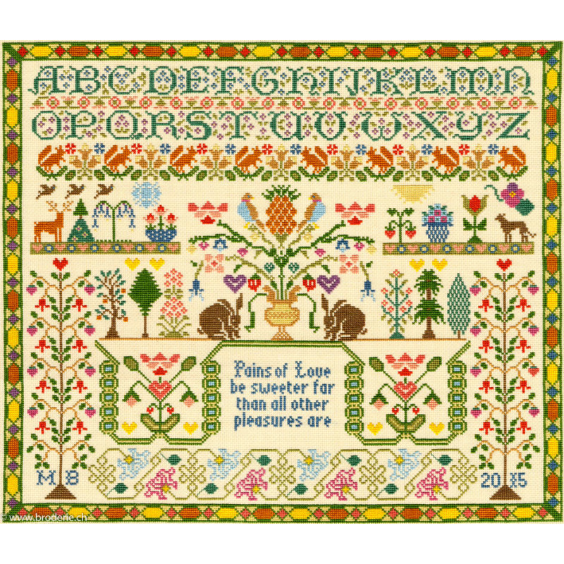 L'article 'Bothy Threads, kit Sampler Pains of Love (BOXS7)' fait partie de notre assortiment depuis le 18 mars 2016. La Maison Bothy Threads nous propose toute une série de très jolis kits de point comptés sur aïda, créés à partir de divers tableaux et artistes anglais. Vous trouverez ainsi des styles très différents (petite filles de Gorjuss, maison drôles de Cut Thru' ...etc). Pour une recherche facilitée des créations d'un artiste, n'oubliez pas d 'utiliser a recherche en mettant le mot clef désiré - par exemple Gorjuss, et vous les aurez tous sur une même page. La complexité et réalisation de ces kits seront très divers selon les créateurs. Explications dans les kits en anglais.