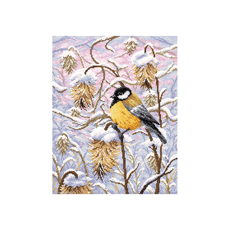 BrilliArt, kit diamant Winter time (art. MC-018). Dimensions: 38 x 48 cm. Kit comprenant la toile adhésive, les strass carrés emballés dans des sachets individuels et numérotés aux références des coloris de DMC, une pince, un stylo et sa colle, 2 réceptables et les explications.Toute la surface du tableau est à recouvrir de strass. ATTENTION: ce n'est pas une broderie, il n'y a ni fil ni aiguille, mais un collage comme une mosaïque.