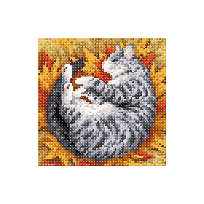 BrilliArt, kit diamant Striped fall (art. MC-045). Dimensions: 20 x 20 cm. Kit comprenant la toile adhésive, les strass carrés emballés dans des sachets individuels et numérotés aux références des coloris de DMC, une pince, un stylo et sa colle, 2 réceptables et les explications.Toute la surface du tableau est à recouvrir de strass. ATTENTION: ce n'est pas une broderie, il n'y a ni fil ni aiguille, mais un collage comme une mosaïque.
