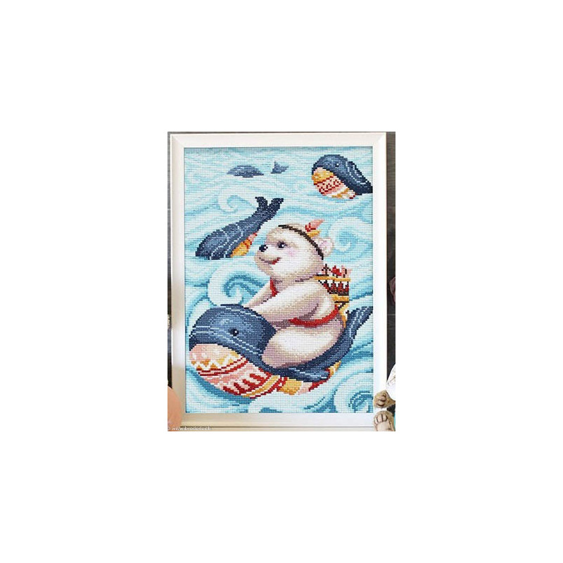 BrilliArt, kit diamant Bear and a whale (art. MC-052). Dimensions: 27 x 38 cm. Kit comprenant la toile adhésive, les strass carrés emballés dans des sachets individuels et numérotés aux références des coloris de DMC, une pince, un stylo et sa colle, 2 réceptables et les explications.Toute la surface du tableau est à recouvrir de strass. ATTENTION: ce n'est pas une broderie, il n'y a ni fil ni aiguille, mais un collage comme une mosaïque.Dans la même série MC-051 et 053.