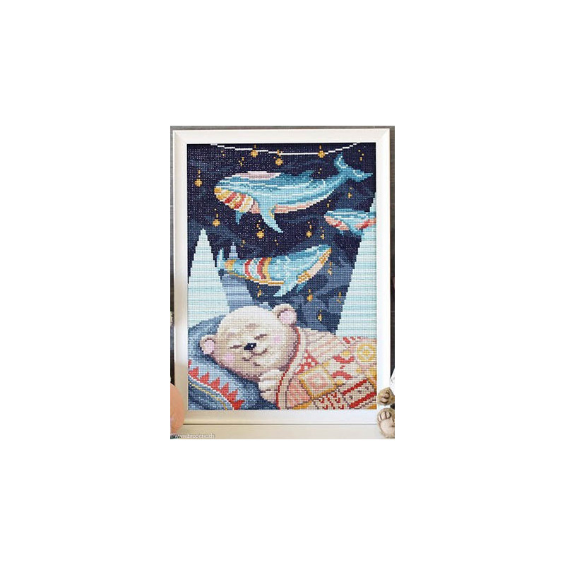 BrilliArt, kit diamant Bear`s dreams (art. MC-053). Dimensions: 27 x 38 cm. Kit comprenant la toile adhésive, les strass carrés emballés dans des sachets individuels et numérotés aux références des coloris de DMC, une pince, un stylo et sa colle, 2 réceptables et les explications.Toute la surface du tableau est à recouvrir de strass. ATTENTION: ce n'est pas une broderie, il n'y a ni fil ni aiguille, mais un collage comme une mosaïque.Dans la même série MC-051 et 052.