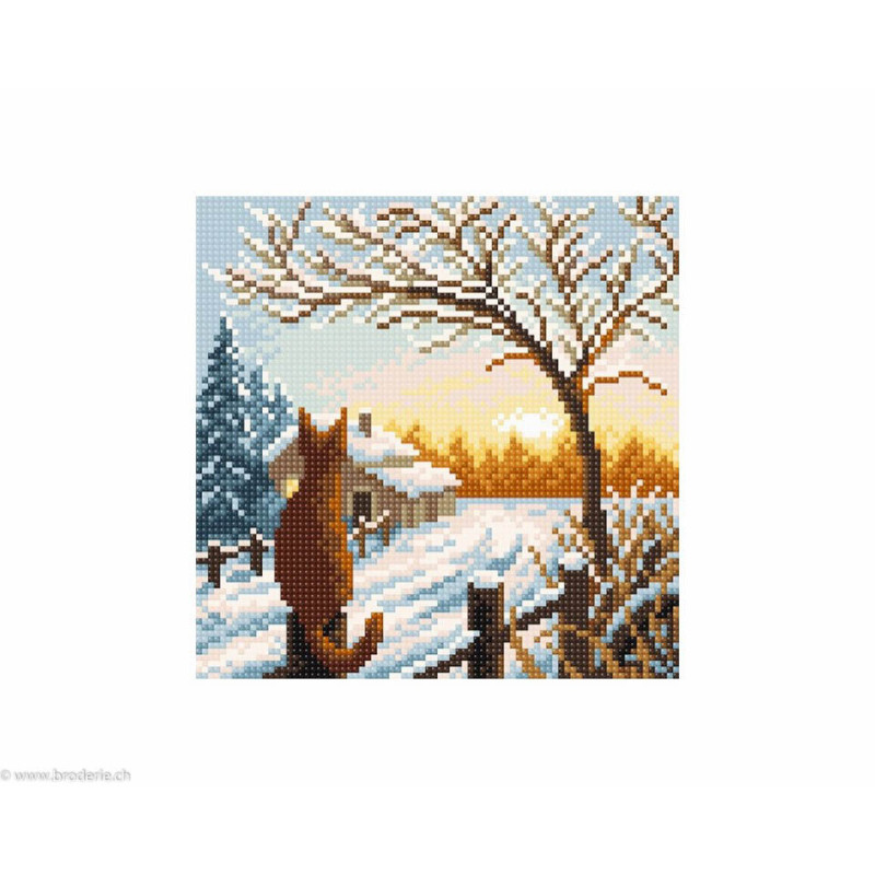 BrilliArt, kit diamant Country Sunset (art. MC-054). Dimensions: 20 x 20 cm. Kit comprenant la toile adhésive, les strass carrés emballés dans des sachets individuels et numérotés aux références des coloris de DMC, une pince, un stylo et sa colle, 2 réceptables et les explications.Toute la surface du tableau est à recouvrir de strass. ATTENTION: ce n'est pas une broderie, il n'y a ni fil ni aiguille, mais un collage comme une mosaïque.