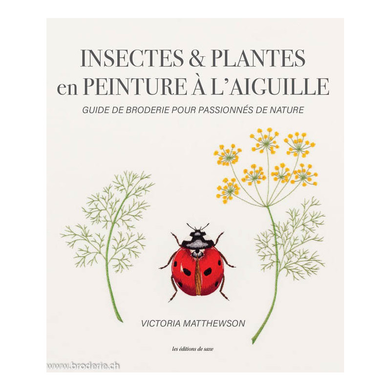 Editions de Saxe, Livre Insectes & plantes (art. MLDI372). Livre de Victoria Matthewson.Ce livre consacré à la peinture à l’aiguille aborde la thématique: les insectes pollinisateurs et leurs plantes, de merveilleux sujets de broderie au passé empiétant ! A la portée de toutes les brodeuses avec les broderies réalisées avec explication pas à pas. Mais cet ouvrage préfacé par un célèbre naturaliste est également instructif.