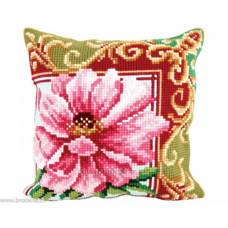 Collection d'Art, kit coussin Luxurious Lily 1 (art. CADE5173). Dimensions: 40 x 40 cm. Canevas peint 1,8 croix/cm, le fond est fourni pour le montage, dans la même série Cade 5174Toute la collection n'est pas mise sur le site, vous trouvez d'autres articles sous https://collectiondart.eu/products/cushion-kits/.