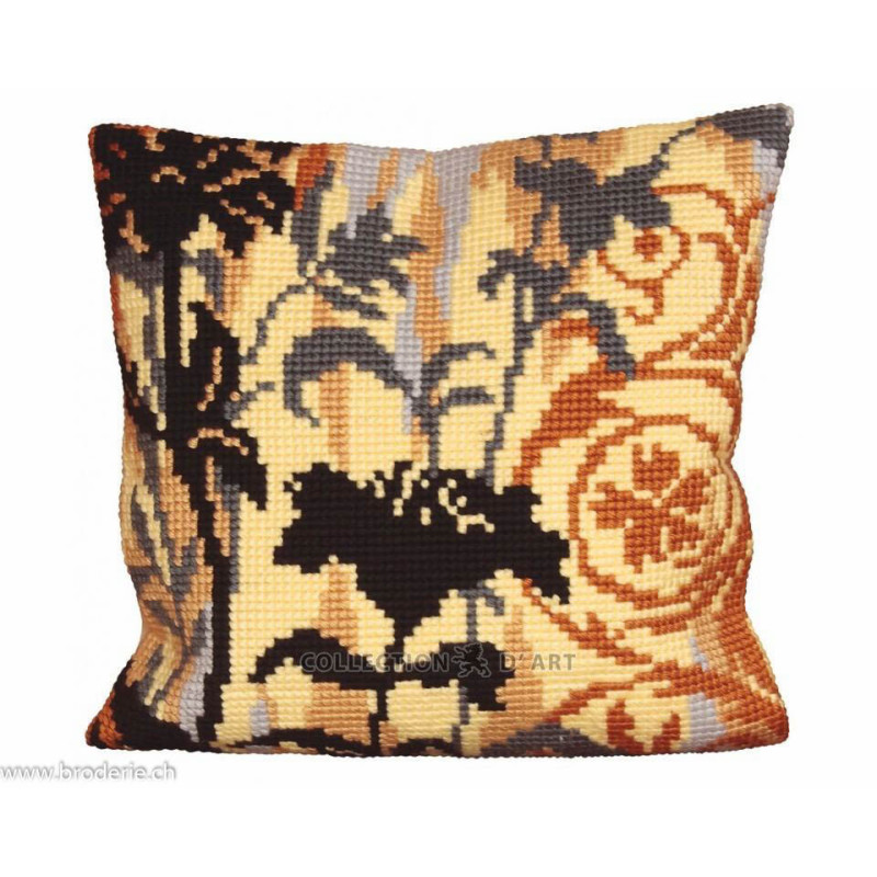 Collection d'Art, kit coussin Silhouette (art. CADE5017). Dimensions: 40 x 40 cm. Canevas peint 1,8 croix/cm, le fond est fourni pour le montage, dans la même série Cade 5188Toute la collection n'est pas mise sur le site, vous trouvez d'autres articles sous https://collectiondart.eu/products/cushion-kits/.