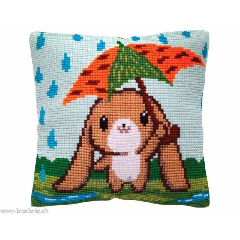 Collection d'Art, kit coussin Summer rain (art. CADE5498). Dimensions: 40 x 40 cm. Canevas peint 1,8 croix/cm, le fond n' est pas fourni pour le montage.Toute la collection n'est pas mise sur le site, vous trouvez d'autres articles sous https://collectiondart.eu/products/cushion-kits/.