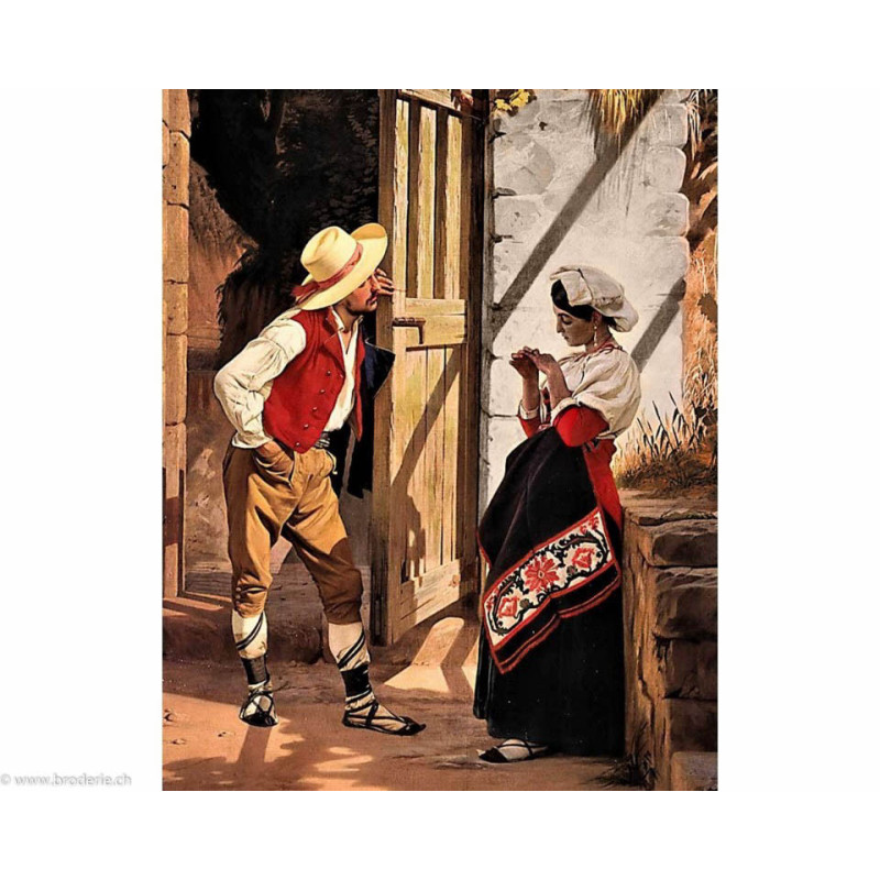 Collection d'Art, kit diamant Talking (art. CADE079). Dimensions: 38 x 48 cm. Kit comprenant la toile adhésive, les strass carrés emballés dans des sachets individuels et numérotés aux références des coloris de DMC, une pince, un stylo et sa colle, 2 réceptables et les explications.Toute la surface du tableau est à recouvrir de strass. ATTENTION: ce n'est pas une broderie, il n'y a ni fil ni aiguille, mais un collage comme une mosaïque.