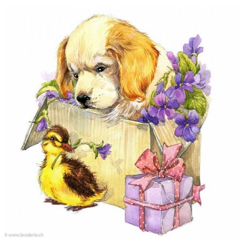 Collection d'Art, kit diamant Fluffy gifts (art. CADE7003). Dimensions: 48 x 38 cm. Kit comprenant la toile adhésive, les strass carrés emballés dans des sachets individuels et numérotés aux références des coloris de DMC, une pince, un stylo et sa colle, 2 réceptables et les explications.Toute la surface du tableau est à recouvrir de strass. ATTENTION: ce n'est pas une broderie, il n'y a ni fil ni aiguille, mais un collage comme une mosaïque.