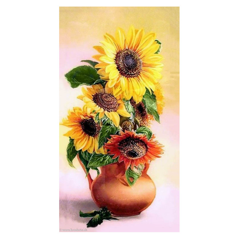 Collection d'Art, kit diamant Yellow bunch (art. CADE7040). Dimensions: 38 x 70 cm. Kit comprenant la toile adhésive, les strass carrés emballés dans des sachets individuels et numérotés aux références des coloris de DMC, une pince, un stylo et sa colle, 2 réceptables et les explications.Toute la surface du tableau est à recouvrir de strass. ATTENTION: ce n'est pas une broderie, il n'y a ni fil ni aiguille, mais un collage comme une mosaïque.