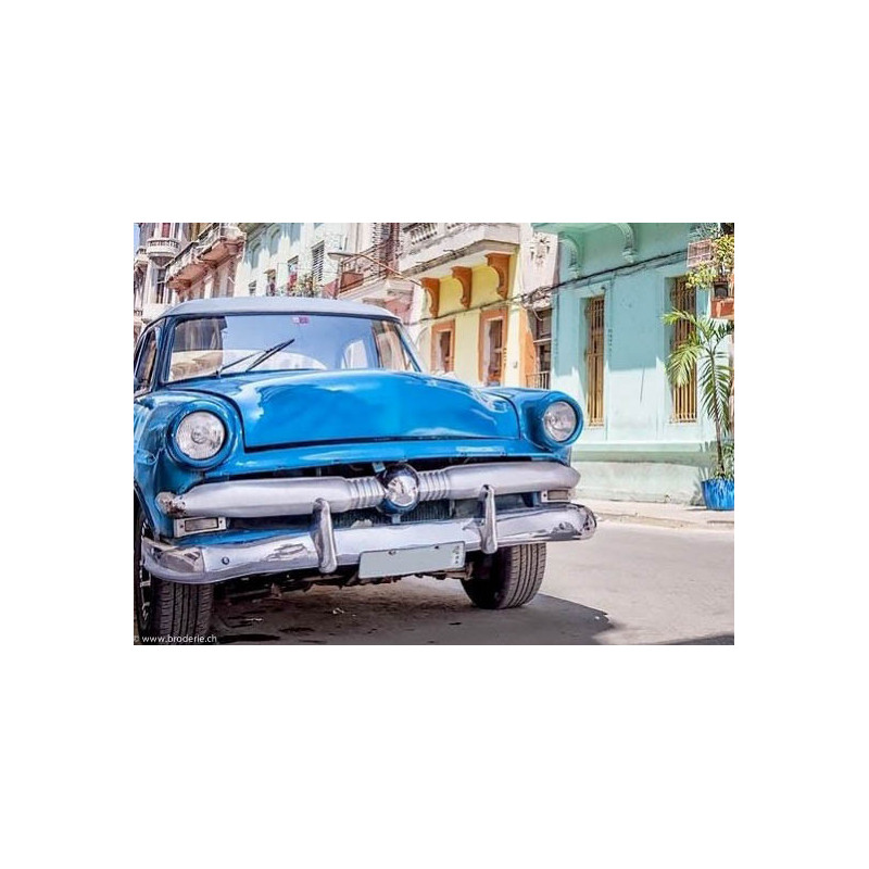 Collection d'Art, kit diamant Caribbean streets (art. CADE7024). Dimensions: 38 x 27 cm. Kit comprenant la toile adhésive, les strass carrés emballés dans des sachets individuels et numérotés aux références des coloris de DMC, une pince, un stylo et sa colle, 2 réceptables et les explications.Toute la surface du tableau est à recouvrir de strass. ATTENTION: ce n'est pas une broderie, il n'y a ni fil ni aiguille, mais un collage comme une mosaïque.