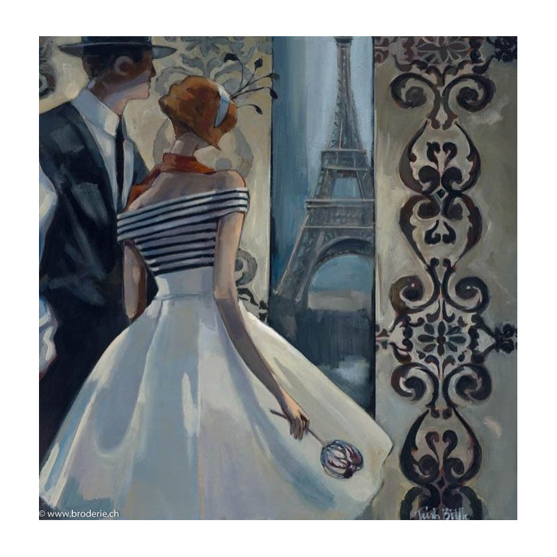 Collection d'Art, kit diamant Spring in Paris (art. CADE7061). Dimensions: 38 x 38 cm. Kit comprenant la toile adhésive, les strass carrés emballés dans des sachets individuels et numérotés aux références des coloris de DMC, une pince, un stylo et sa colle, 2 réceptables et les explications.Toute la surface du tableau est à recouvrir de strass. ATTENTION: ce n'est pas une broderie, il n'y a ni fil ni aiguille, mais un collage comme une mosaïque.
