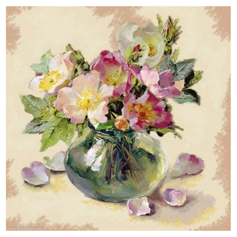 Collection d'Art, kit diamant Briar bunch (art. CADE7055). Dimensions: 38 x 38 cm. Kit comprenant la toile adhésive, les strass carrés emballés dans des sachets individuels et numérotés aux références des coloris de DMC, une pince, un stylo et sa colle, 2 réceptables et les explications.Toute la surface du tableau est à recouvrir de strass. ATTENTION: ce n'est pas une broderie, il n'y a ni fil ni aiguille, mais un collage comme une mosaïque.