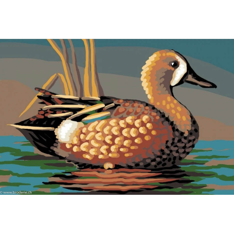 Collection d'Art, kit diamant carte Duck (art. CADCCF036). Dimensions: 20 x 29 cm. Kit comprenant la toile adhésive, les strass carrés emballés dans des sachets individuels et numérotés aux références des coloris de DMC, une pince, un stylo et sa colle, et les explications.Sur un carton solide, cela fait un joli petit tableauATTENTION: ce n'est pas une broderie, il n'y a ni fil ni aiguille, mais un collage comme une mosaïque.