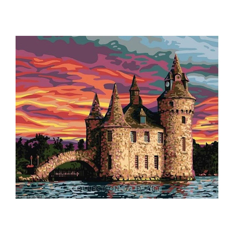 Collection d'Art, kit diamant Heart island (art. CADE7152). Dimensions: 38 x 27 cm. Kit comprenant la toile adhésive, les strass carrés emballés dans des sachets individuels et numérotés aux références des coloris de DMC, une pince, un stylo et sa colle, 2 réceptables et les explications.Toute la surface du tableau est à recouvrir de strass. ATTENTION: ce n'est pas une broderie, il n'y a ni fil ni aiguille, mais un collage comme une mosaïque.