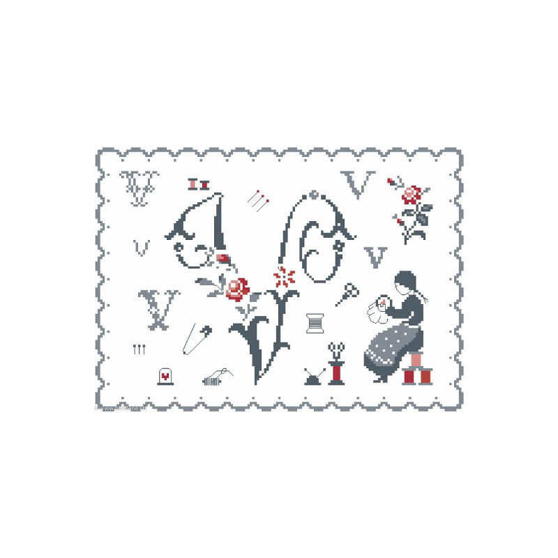 L'article 'Couleur d'étoile, grille Initiale V (CE0096V)' fait partie de notre assortiment depuis le 30 avril 2013. Couleur d'Etoile est une jolie gamme classique de modèles de points de croix comptés, et propose essentillement des modèles monochromes, dont la plupart forment des coeurs, avec des thèmes divers - anges - danse - abécédaires et modèles anciens - marquoir - brodeuses. Fiche technique: points de croix comptés, peu de points arrières, modèles riches en finesse dans les morifs, et se réalisent volontiers sur une trame de lin (éventuellement sur un aïda fin).