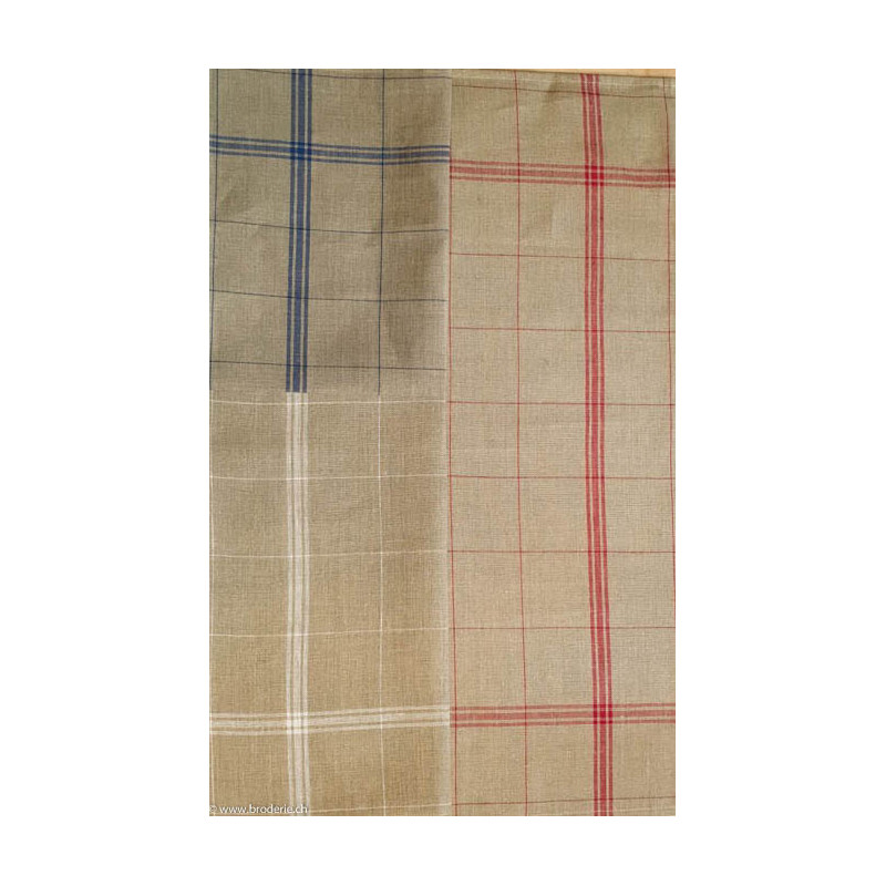 Thieffry Frères, linge de cuisine en lin lignes blanches, fond naturel (art. THLNW). Dimensions: 60 x 75 cm. Linge 100% lin 12 fils/cm. Idées de modèles pour ce linge dans le livre MLAB326 des Edtisons de saxe; grilles d' Isabelle Vautier. En bas à gauche sur la photo.