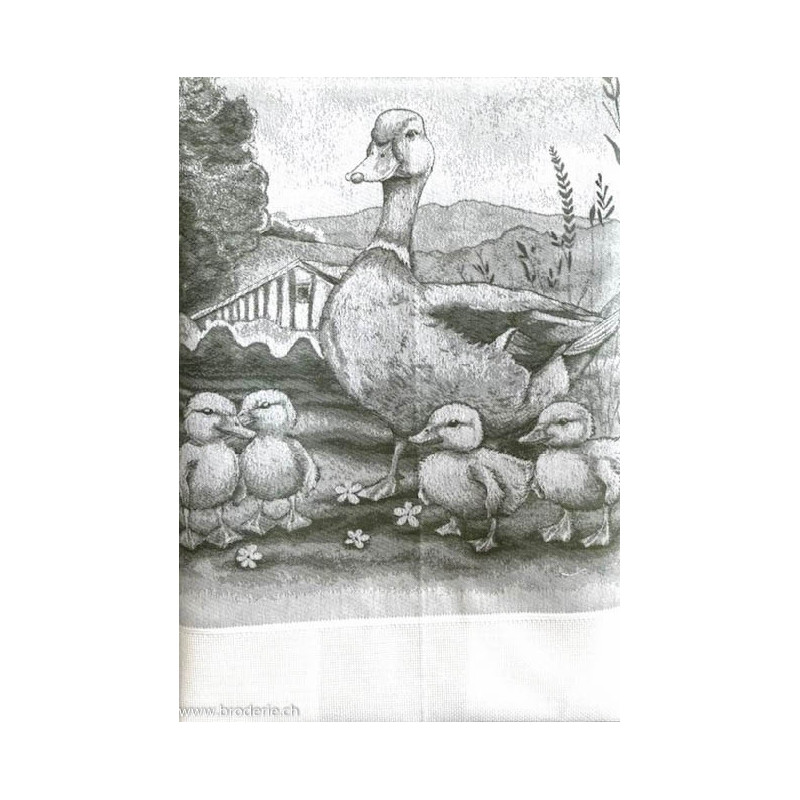 Graziano, Linge de cuisine Rovigo Canard vert (art. CU6601). Dimensions: 60 x 75 cm. Linge mi-coton-mi-lin, fond écru, avec une bande à broder 5.5 points/cm de 50 point de haut, largeur 42cm,La photo resort mal avec les couleurs, c'est vertRéférence mouliné DMC 937.