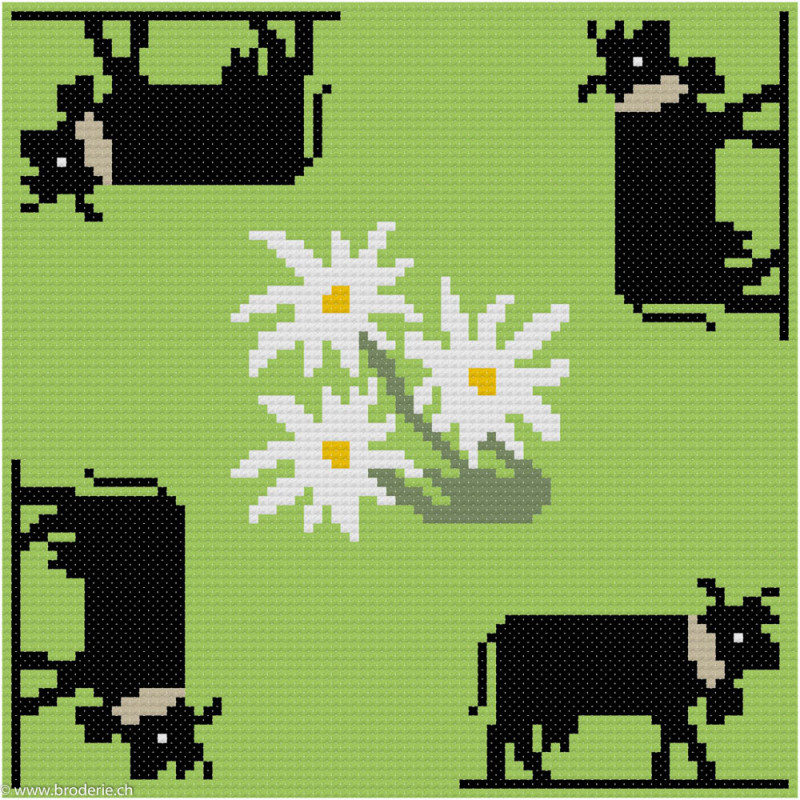 ClBroderie, tapis de carte Vaches noires et Edelweiss (TDC09)
