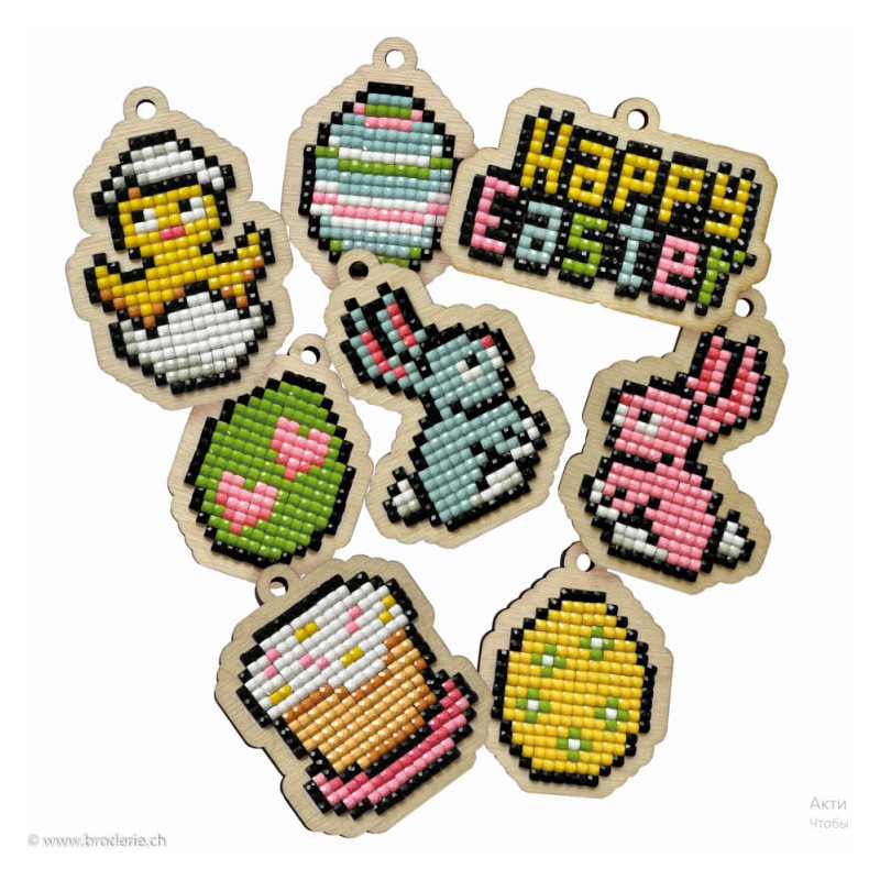 Wizardi, kit diamant suspense Garland Easter set (8 pcs) (art. WIWW508). 8 petites suspenses, en bois, avec strass carrés à coller.Attention ce n'est pas une broderie, pas de fil ni d'aiguille.