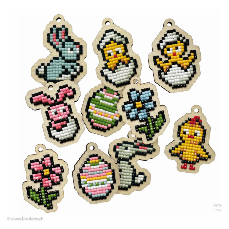 Wizardi, kit diamant suspense Garland Easter set (10 pcs) (art. WIWW509). 10 petites suspenses, en bois, avec strass carrés à coller.Attention ce n'est pas une broderie, pas de fil ni d'aiguille.