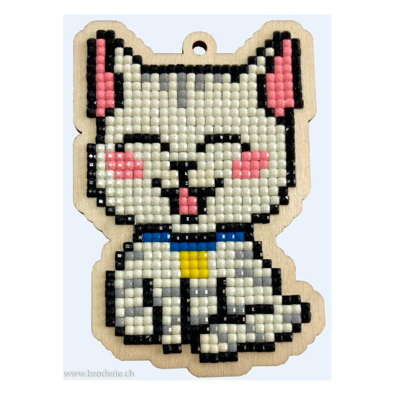 Wizardi, kit diamant suspense petite chat (art. WIWW522). Dimensions: 6.8 x 10.1 cm. Petite suspense en bois, avec strass carrés à coller.Attention ce n'est pas une broderie, pas de fil ni d'aiguille.