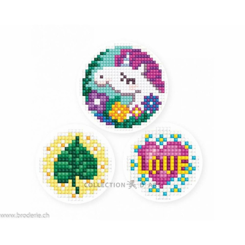 Collection d'Art, kit diamant 3 stickers licorne (art. CADEDCS002). Lot de trois kits diamants autocollants.Comprend les toile adhésive, les strass carrés emballés dans des sachets individuels et numérotés aux références des coloris de DMC, une pince, un stylo et sa colle, et les explications.ATTENTION: ce n'est pas une broderie, il n'y a ni fil ni aiguille, mais un collage comme une mosaïque.