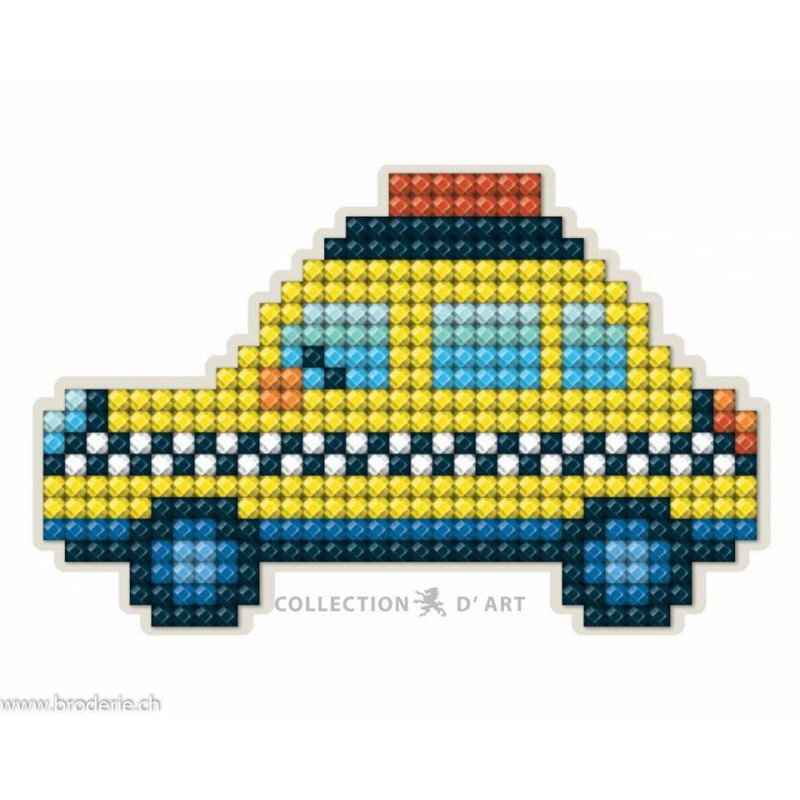 Collection d'Art, kit diamant magnet voiture de police (art. CADCM030). Dimensions: 8.5 x 5.5 cm. Petit kit diamant sur du bois, magnet compris, avec strass carrés à coller.Attention ce n'est pas une broderie, pas de fil ni d'aiguille.