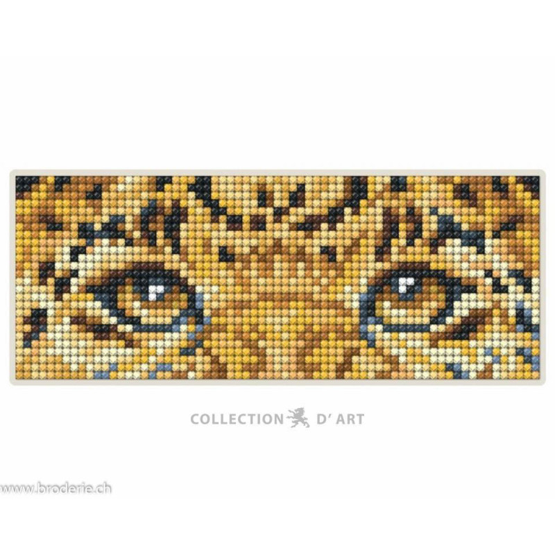Collection d'Art, kit diamant magnet regard de guépard (art. CADCM043). Dimensions: 17 x 6.8 cm. Petit kit diamant sur du bois, magnet compris, avec strass carrés à coller.Attention ce n'est pas une broderie, pas de fil ni d'aiguille.
