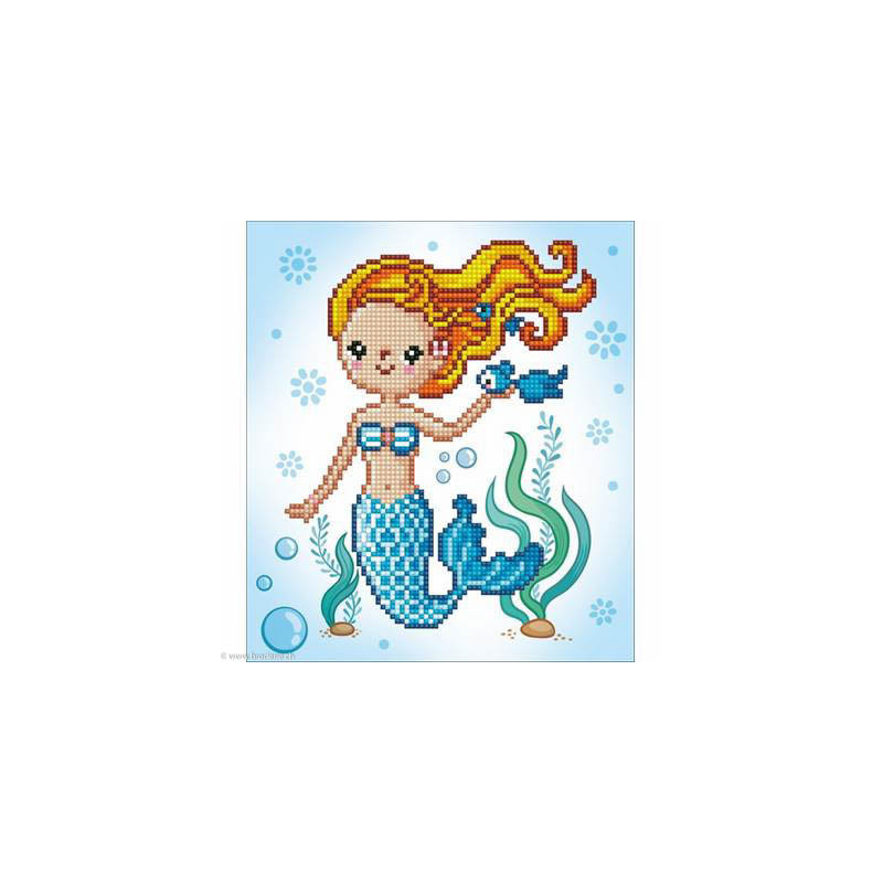 Diamond Dotz, kit diamant niveau 1 Sweet Swimmer (art. DD3022). Dimensions: 23 x 25 cm. Kit Diamant comprenant la toile adhésive imprimée à recouvrir de strass, les sachets de strass 'diamants' ronds triés par couleurs, un stylet et sa cire, un réceptacle et les explications.La toile est partiellement peinte, et n'est pas entièrement couverte de strass, uniquement les motifs qui donnent un bel aspect de relief.ATTENTION, ce n'est pas une broderie, pas de fil ni d'aiguille, mais une mosaïque.