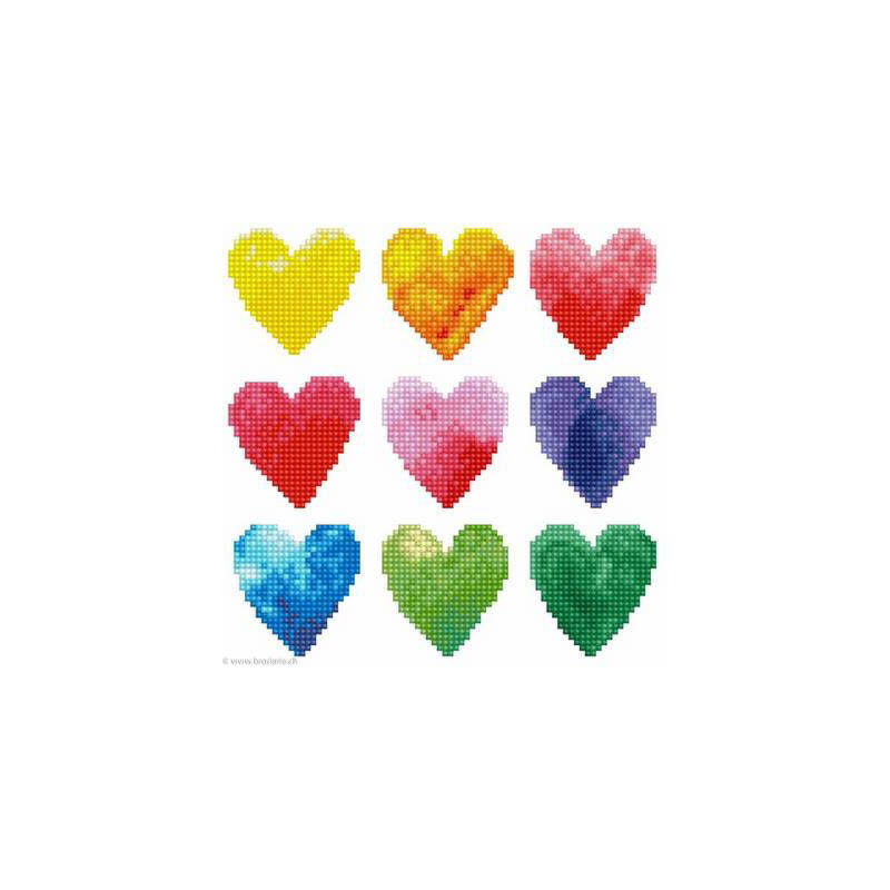 Diamond Dotz, kit diamant niveau 1 Love Rainbow (art. DD3026). Dimensions: 23 x 23 cm. Kit Diamant comprenant la toile adhésive imprimée à recouvrir de strass, les sachets de strass 'diamants' ronds triés par couleurs, un stylet et sa cire, un réceptacle et les explications.La toile est partiellement peinte, et n'est pas entièrement couverte de strass, uniquement les motifs qui donnent un bel aspect de relief.ATTENTION, ce n'est pas une broderie, pas de fil ni d'aiguille, mais une mosaïque.