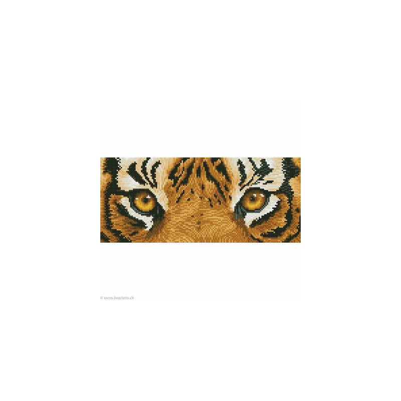 Diamond Dotz, kit diamant niveau 2 Tiger Spy (art. DD5041). Dimensions: 42 x 15 cm. Kit Diamant comprenant la toile adhésive imprimée à recouvrir de strass, les sachets de strass 'diamants' ronds triés par couleurs, un stylet et sa cire, un réceptacle et les explications.La toile est partiellement peinte, et n'est pas entièrement couverte de strass, uniquement les motifs qui donnent un bel aspect de relief.ATTENTION, ce n'est pas une broderie, pas de fil ni d'aiguille, mais une mosaïque.