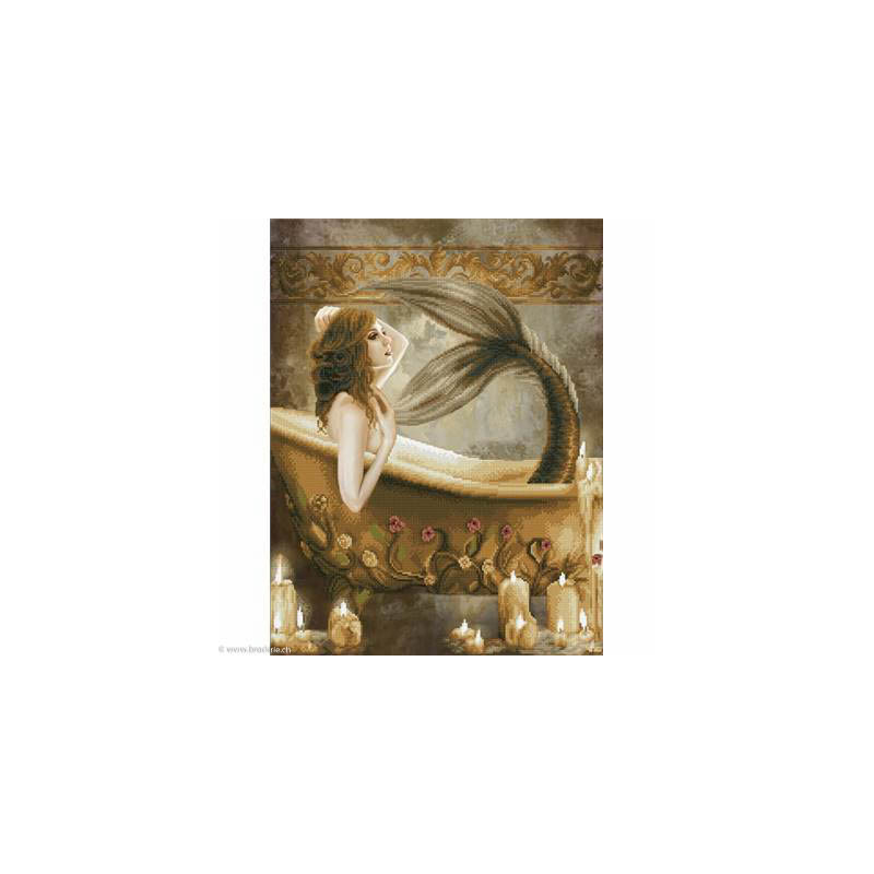 Diamond Dotz, kit diamant niveau 3 Bath Time Mermaid (art. DD12037). Dimensions: 52 x 68 cm. Kit Diamant comprenant la toile adhésive imprimée à recouvrir de strass, les sachets de strass 'diamants' ronds triés par couleurs, un stylet et sa cire, un réceptacle et les explications.La toile est partiellement peinte, et n'est pas entièrement couverte de strass, uniquement les motifs qui donnent un bel aspect de relief.ATTENTION, ce n'est pas une broderie, pas de fil ni d'aiguille, mais une mosaïque.