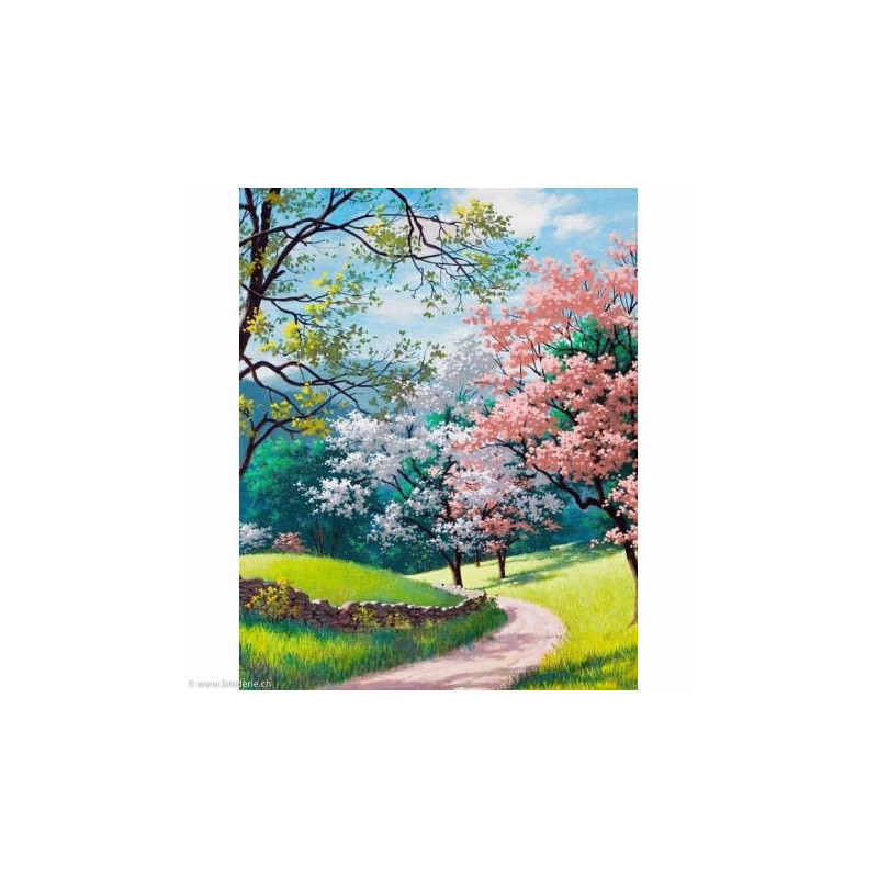 Wizardi, kit diamant Magic Garden Road (art. WIWD2345). Dimensions: 38 x 48 cm. Kit complet de Broderie Diamant comprenant la toile adhésive imprimée à recouvrir de strass, les sachets de strass 'diamants' triés par couleurs, un stylet et sa cire, un réceptacle et les explications. La totalité de la surface est à recouvrir. ATTENTION, ce n'est pas une broderie, pas de fil ni d'aiguille, mais une mosaïque.