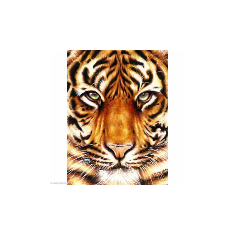 Wizardi, kit diamant Tiger Look (art. WIWD2360). Dimensions: 15 x 20 cm. Kit complet de Broderie Diamant comprenant la toile adhésive imprimée à recouvrir de strass, les sachets de strass 'diamants' triés par couleurs, un stylet et sa cire, un réceptacle et les explications. La totalité de la surface est à recouvrir. ATTENTION, ce n'est pas une broderie, pas de fil ni d'aiguille, mais une mosaïque.