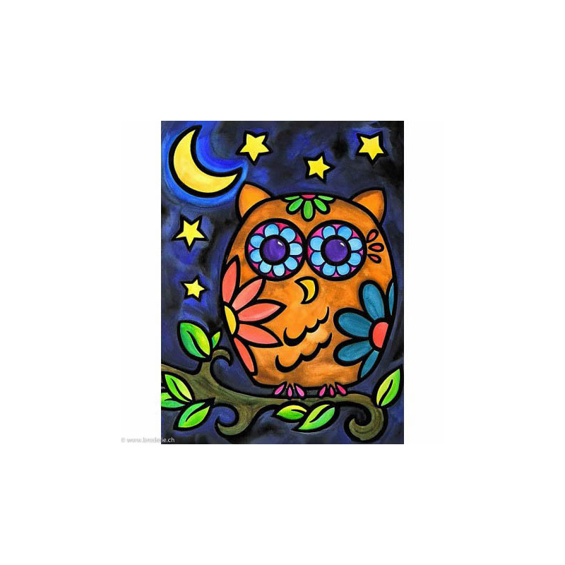 Wizardi, kit diamant Night Idler (art. WIWD2365). Dimensions: 15 x 20 cm. Kit complet de Broderie Diamant comprenant la toile adhésive imprimée à recouvrir de strass, les sachets de strass 'diamants' triés par couleurs, un stylet et sa cire, un réceptacle et les explications. La totalité de la surface est à recouvrir. ATTENTION, ce n'est pas une broderie, pas de fil ni d'aiguille, mais une mosaïque.
