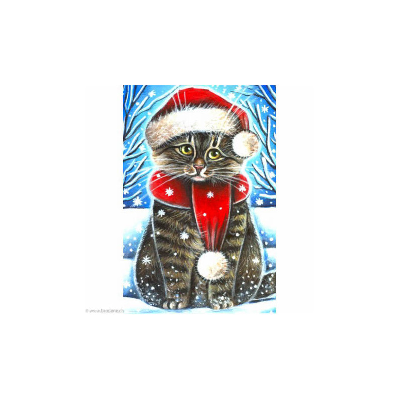 Wizardi, kit diamant Christmas Cat (art. WIWD2436). Dimensions: 20 x 30 cm. Kit complet de Broderie Diamant comprenant la toile adhésive imprimée à recouvrir de strass, les sachets de strass 'diamants' triés par couleurs, un stylet et sa cire, un réceptacle et les explications. La totalité de la surface est à recouvrir. ATTENTION, ce n'est pas une broderie, pas de fil ni d'aiguille, mais une mosaïque.
