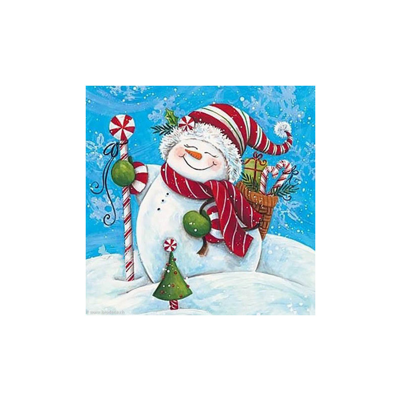Wizardi, kit diamant Snowman with Gifts (art. WIWD2444). Dimensions: 38 x 38 cm. Kit complet de Broderie Diamant comprenant la toile adhésive imprimée à recouvrir de strass, les sachets de strass 'diamants' triés par couleurs, un stylet et sa cire, un réceptacle et les explications. La totalité de la surface est à recouvrir. ATTENTION, ce n'est pas une broderie, pas de fil ni d'aiguille, mais une mosaïque.