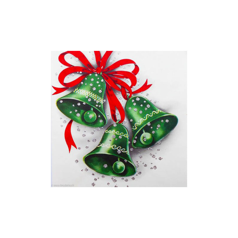 Wizardi, kit diamant Green Bells (art. WIWD2445). Dimensions: 38 x 38 cm. Kit complet de Broderie Diamant comprenant la toile adhésive imprimée à recouvrir de strass, les sachets de strass 'diamants' triés par couleurs, un stylet et sa cire, un réceptacle et les explications. La totalité de la surface est à recouvrir. ATTENTION, ce n'est pas une broderie, pas de fil ni d'aiguille, mais une mosaïque.