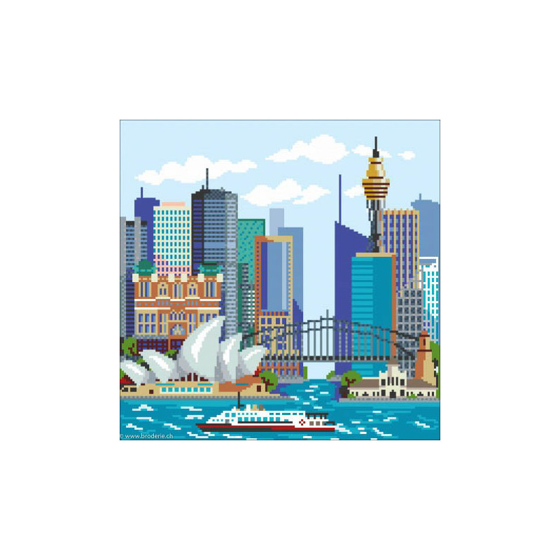 Wizardi, kit diamant Sydney (art. WIWD2449). Dimensions: 38 x 38 cm. Kit complet de Broderie Diamant comprenant la toile adhésive imprimée à recouvrir de strass, les sachets de strass 'diamants' triés par couleurs, un stylet et sa cire, un réceptacle et les explications. La totalité de la surface est à recouvrir. ATTENTION, ce n'est pas une broderie, pas de fil ni d'aiguille, mais une mosaïque.
