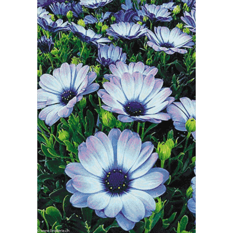 Wizardi, kit diamant Alpine Flowers (art. WIWD2394). Dimensions: 68 x 100 cm. Kit complet de Broderie Diamant comprenant la toile adhésive imprimée à recouvrir de strass, les sachets de strass 'diamants' triés par couleurs, un stylet et sa cire, un réceptacle et les explications. La totalité de la surface est à recouvrir. ATTENTION, ce n'est pas une broderie, pas de fil ni d'aiguille, mais une mosaïque.