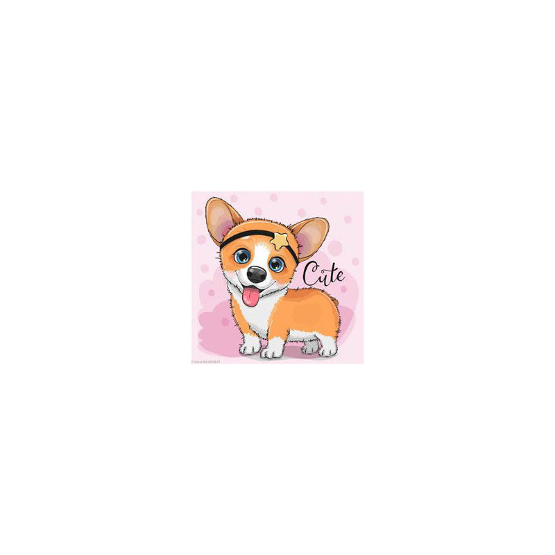 Wizardi, kit diamant Corgi (art. WIWD2473). Dimensions: 20 x 20 cm. Kit complet de Broderie Diamant comprenant la toile adhésive imprimée à recouvrir de strass, les sachets de strass 'diamants' triés par couleurs, un stylet et sa cire, un réceptacle et les explications. La totalité de la surface est à recouvrir. ATTENTION, ce n'est pas une broderie, pas de fil ni d'aiguille, mais une mosaïque.