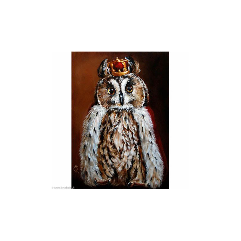 Wizardi, kit diamant Owl King (art. WIWD2468). Dimensions: 27 x 38 cm. Kit complet de Broderie Diamant comprenant la toile adhésive imprimée à recouvrir de strass, les sachets de strass 'diamants' triés par couleurs, un stylet et sa cire, un réceptacle et les explications. La totalité de la surface est à recouvrir. ATTENTION, ce n'est pas une broderie, pas de fil ni d'aiguille, mais une mosaïque.