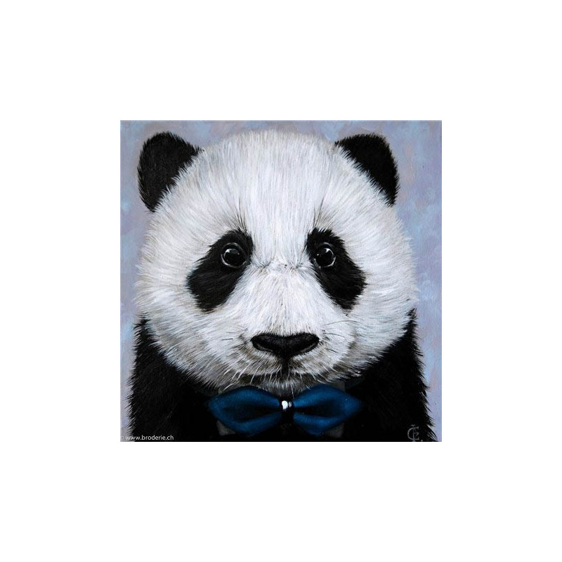 Wizardi, kit diamant Panda with Bow Tie (art. WIWD2466). Dimensions: 20 x 20 cm. Kit complet de Broderie Diamant comprenant la toile adhésive imprimée à recouvrir de strass, les sachets de strass 'diamants' triés par couleurs, un stylet et sa cire, un réceptacle et les explications. La totalité de la surface est à recouvrir. ATTENTION, ce n'est pas une broderie, pas de fil ni d'aiguille, mais une mosaïque.