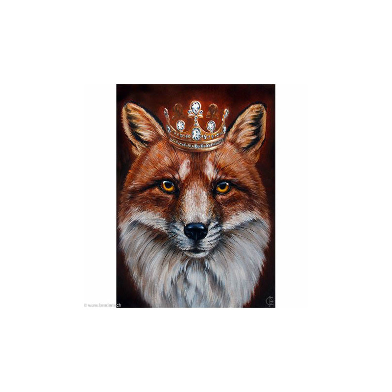 Wizardi, kit diamant Fox King (art. WIWD2467). Dimensions: 27 x 38 cm. Kit complet de Broderie Diamant comprenant la toile adhésive imprimée à recouvrir de strass, les sachets de strass 'diamants' triés par couleurs, un stylet et sa cire, un réceptacle et les explications. La totalité de la surface est à recouvrir. ATTENTION, ce n'est pas une broderie, pas de fil ni d'aiguille, mais une mosaïque.