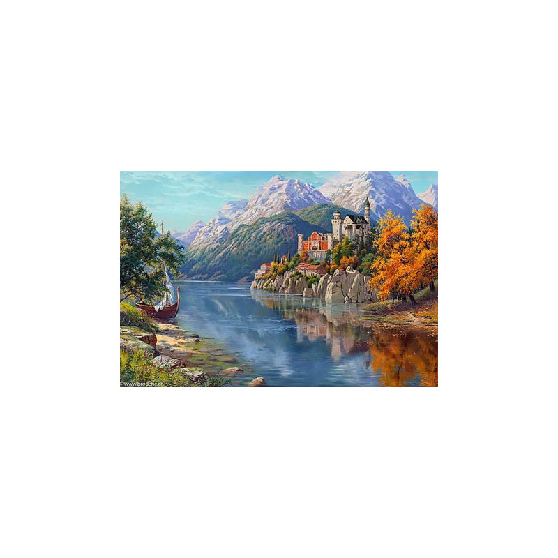 Wizardi, kit diamant Castle in Mountains (art. WIWD2461). Dimensions: 100 x 68 cm. Kit complet de Broderie Diamant comprenant la toile adhésive imprimée à recouvrir de strass, les sachets de strass 'diamants' triés par couleurs, un stylet et sa cire, un réceptacle et les explications. La totalité de la surface est à recouvrir. ATTENTION, ce n'est pas une broderie, pas de fil ni d'aiguille, mais une mosaïque.