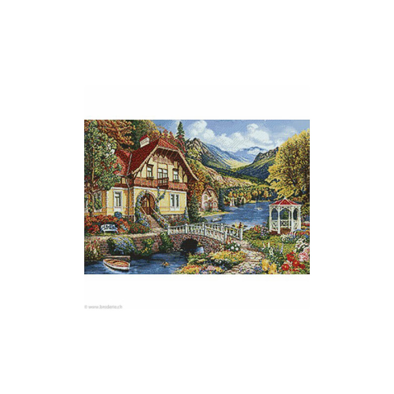 Wizardi, kit diamant Quiet Place (art. WIWD2488). Dimensions: 70 x 48 cm. Kit complet de Broderie Diamant comprenant la toile adhésive imprimée à recouvrir de strass, les sachets de strass 'diamants' triés par couleurs, un stylet et sa cire, un réceptacle et les explications. La totalité de la surface est à recouvrir. ATTENTION, ce n'est pas une broderie, pas de fil ni d'aiguille, mais une mosaïque.