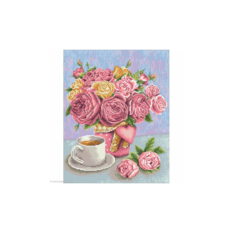 Wizardi, kit diamant Morning Aromas (art. WIWD2490). Dimensions: 38 x 48 cm. Kit complet de Broderie Diamant comprenant la toile adhésive imprimée à recouvrir de strass, les sachets de strass 'diamants' triés par couleurs, un stylet et sa cire, un réceptacle et les explications. La totalité de la surface est à recouvrir. ATTENTION, ce n'est pas une broderie, pas de fil ni d'aiguille, mais une mosaïque.