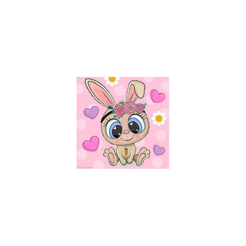 Wizardi, kit diamant Little Rabbit (art. WIWD2533). Dimensions: 20 x 20 cm. Kit complet de Broderie Diamant comprenant la toile adhésive imprimée à recouvrir de strass, les sachets de strass 'diamants' triés par couleurs, un stylet et sa cire, un réceptacle et les explications. La totalité de la surface est à recouvrir. ATTENTION, ce n'est pas une broderie, pas de fil ni d'aiguille, mais une mosaïque.